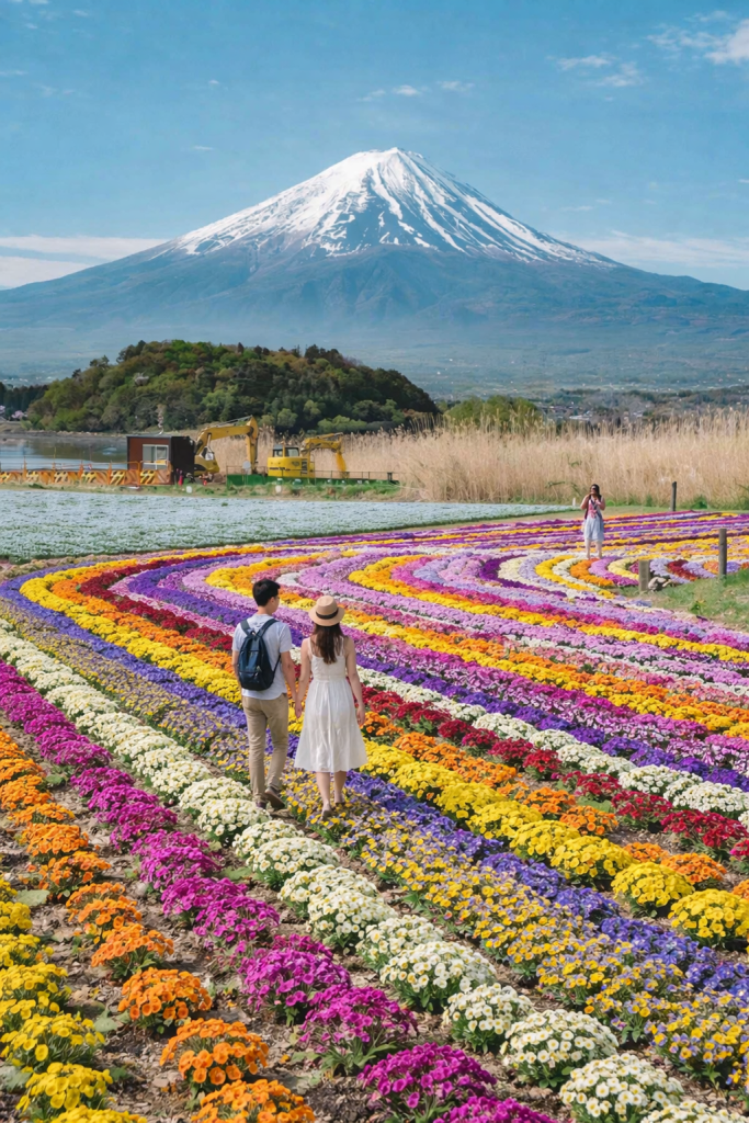 Oishi Park Japan is one of the most scenic places to witness the beauty of Mount Fuji surrounded by colorful seasonal flowers. Located near Lake Kawaguchi, this peaceful park offers a perfect escape from busy city life and is a must-visit for nature lovers and photographers.
